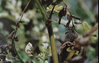 严重时病斑扩展到主脉或叶柄,使叶片萎蔫下垂,***后整个植株变为焦黑,呈湿腐状。茎部很少被病菌侵染,但病斑可顺叶柄扩展至茎部,在皮层上形成长短不一的褐色条斑,潮湿条件下病斑也可以发生白色霉层。